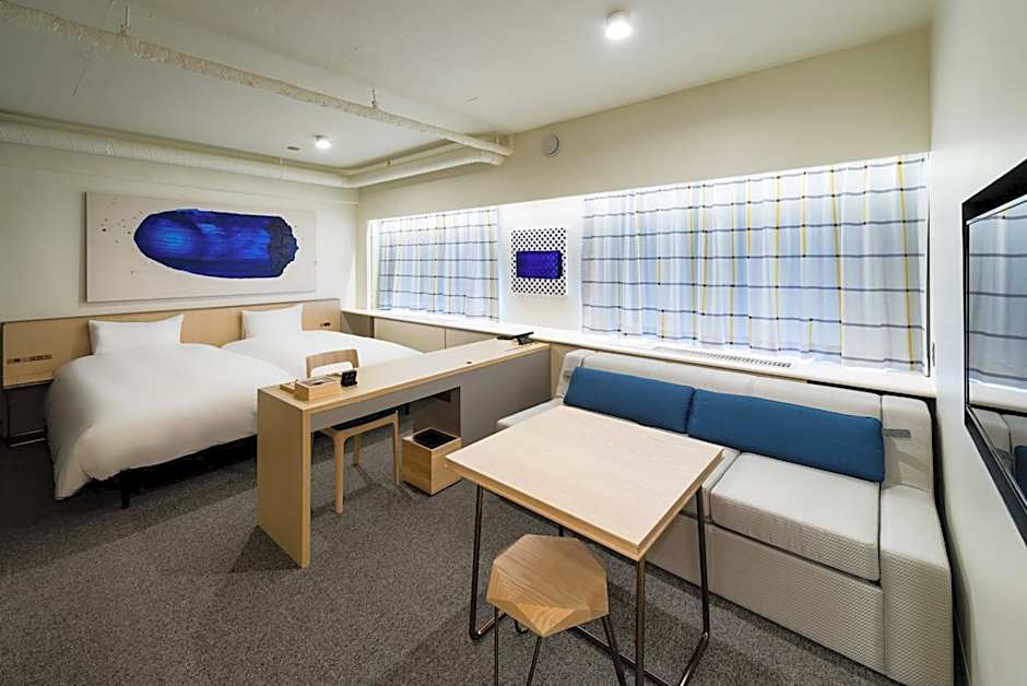 Compact, simple room in neutral colors and fitted with an LCD TV, a design sofa and a table. Sleepwear and toiletries are provided.